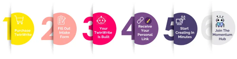 Your TwinWrite is powerful from day one, but the Hub keeps you using it consistently with coaching, accountability, and updates as AI evolves. It is the Hub that will be your online business team to float ideas, see others succeed, network and feel supported as the world takes off in the AI revolution.